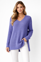 Avalin Long Sleeve Center Seam V Neck Sweater - Iris
