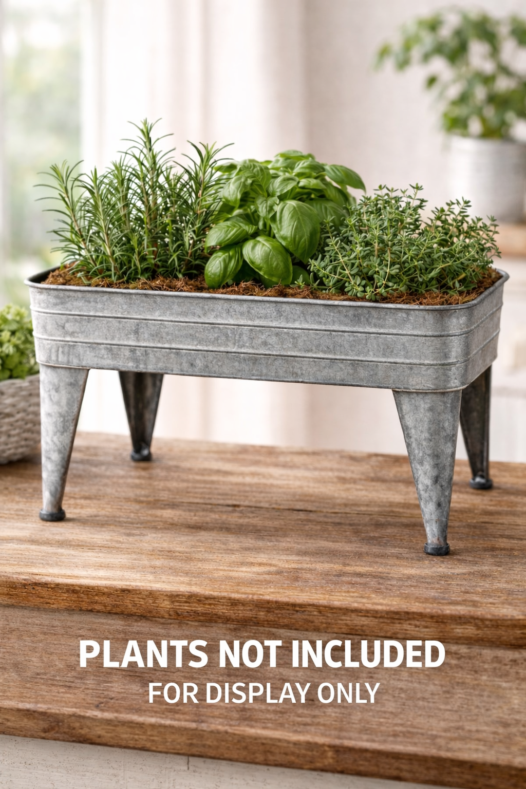 Galvanized Metal Raised Planter Stand – Rustic Farmhouse Decor