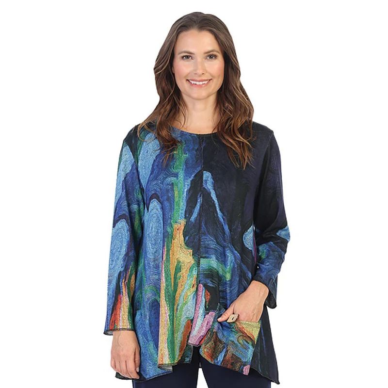 Description: Stay stylish with the Layla Cozy Asymmetrical Hem Pocket Top by Jess And Jane. This vibrant top features a unique hemline and a convenient pocket, making it your go-to piece for fall. With a flattering scoop neckline and soft fabric, it keeps you comfortable and chic for any casual event.