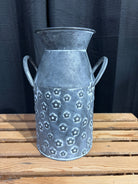 Rustic Galvanized Milk Can Vase with Embossed Daisy Design