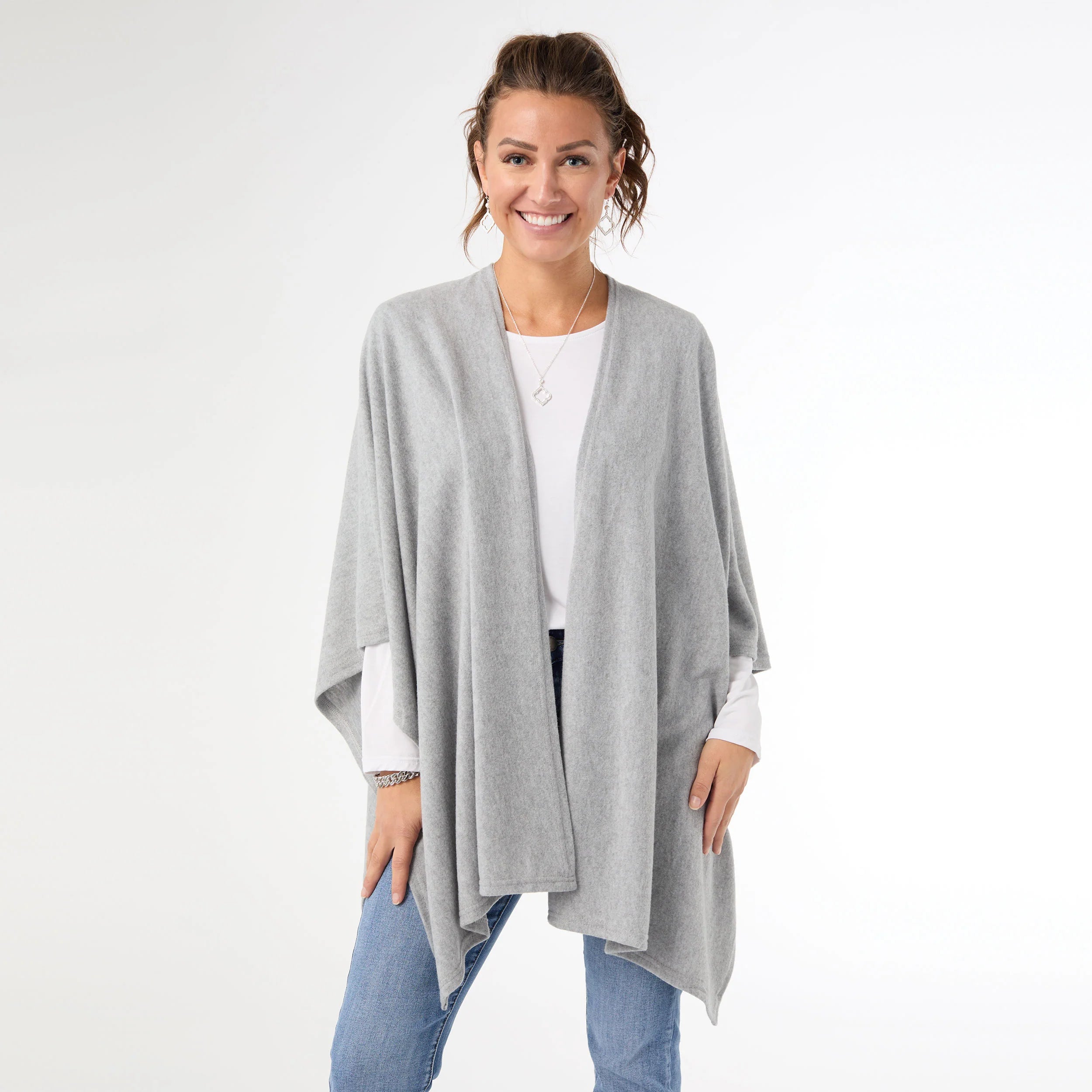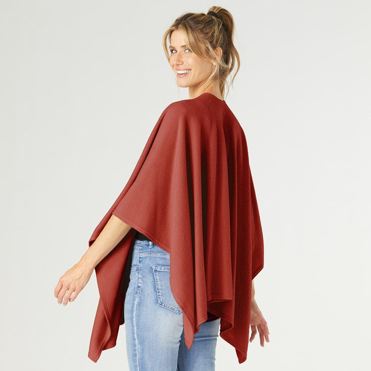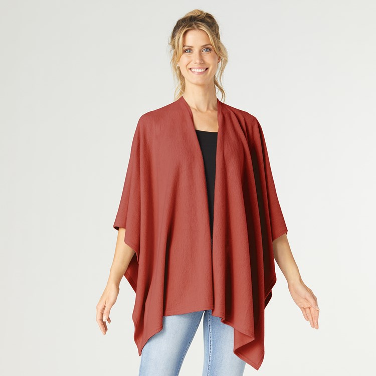 Description: Add a layer of warmth and style to any outfit with our Kiara Lightweight Wrap. The open-style front makes it easy to toss over your top or dress. This one size fits most wrap can be worn all year-round. Perfect for work, home or travel. Pair with our Embrace Fashion Fasteners to create a unique look.